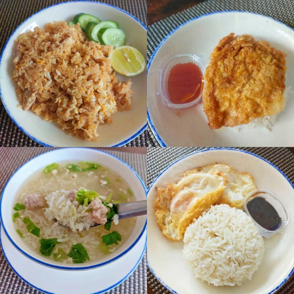 - ข้าวไข่เจียว -ข้าวไข่ดาว - ข้าวต้มหมู - ข้าวผัดหมู